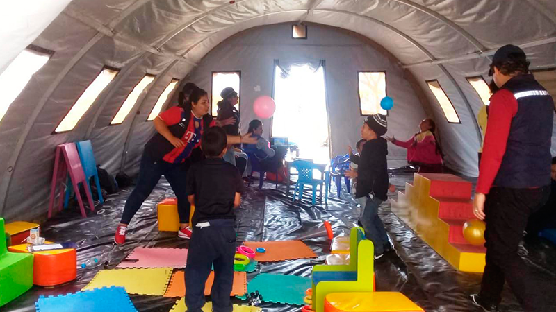 MIES instaló carpa lúdica en Huaquillas para atender a niñas y niños en situación de movilidad humana riesgosa